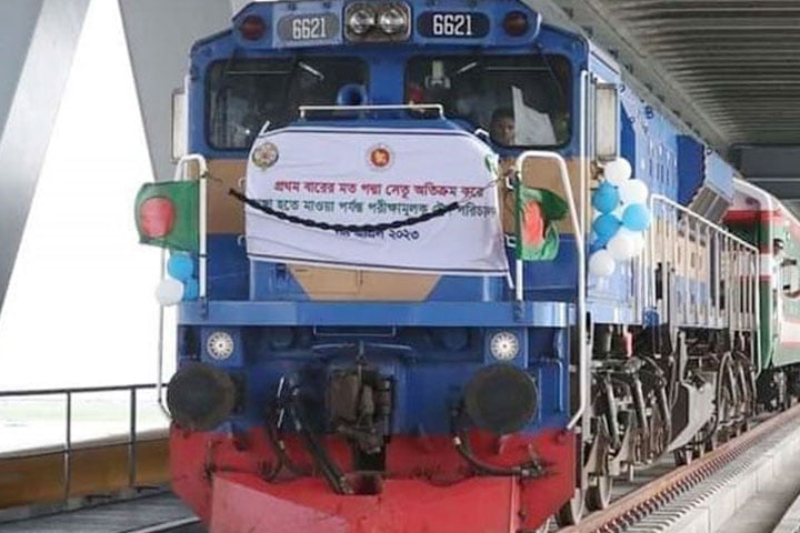 ফরিদপুরের ভাঙ্গা থেকে পদ্মা সেতু পার হয়ে মুন্সীগঞ্জের মাওয়া প্রান্ত পর্যন্ত গতি পরীক্ষা করার জন্য একটি ট্রেন চারবার আসা-যাওয়া করল।