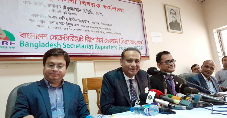 সোমবার (২০ নভেম্বর) সচিবালয়ে গণমাধ্যম কেন্দ্রে স্মার্ট ভূমি সেবা বিষয়ক কর্মশালায় মন্ত্রী এ কথা বলেন। বাংলাদেশ সেক্রেটারিয়েট রিপোর্টার্স ফোরাম (বিএসআরএফ) এ কর্মশালার আয়োজন করে।
