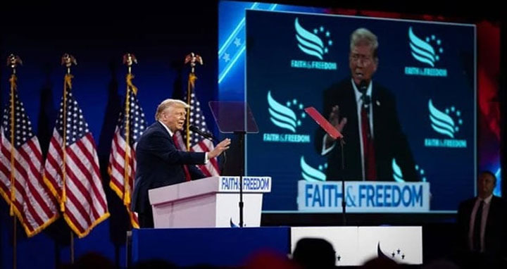 রক্ষণশীল অ্যাডভোকেসি গ্রুপ ফেইথ অ্যান্ড ফ্রিডম কোয়ালিশনের ওয়াশিংটন কনফারেন্সে ট্রাম্প শত শত সমর্থককে বলেছেন, ‘ইভাঞ্জেলিক্যালস এবং খ্রিস্টানরা যতটা ভোট দেওয়া উচিত ততটা দেয় না।’