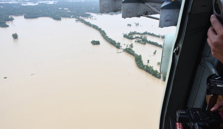 বৃহস্পতিবার বাংলাদেশ বিমান বাহিনীর একটি এমআই -১৭১ এসএইচ হেলিকপ্টারের মাধ্যমে ত্রাণ সামগ্রী বিতরণের লক্ষ্যে বন্যা কবলিত বিভিন্ন এলাকায় পর্যবেক্ষণ মিশন পরিচালনা করে।