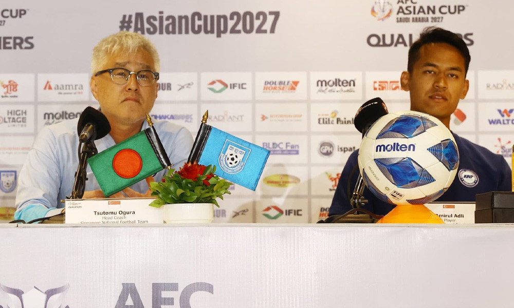 ম্যাচ পূর্ববর্তী সংবাদ সম্মেলনে এসে যেমন এক রকম হুংকারই দিলেন সিঙ্গাপুরের কোচ সুতোমু ওগুরা।